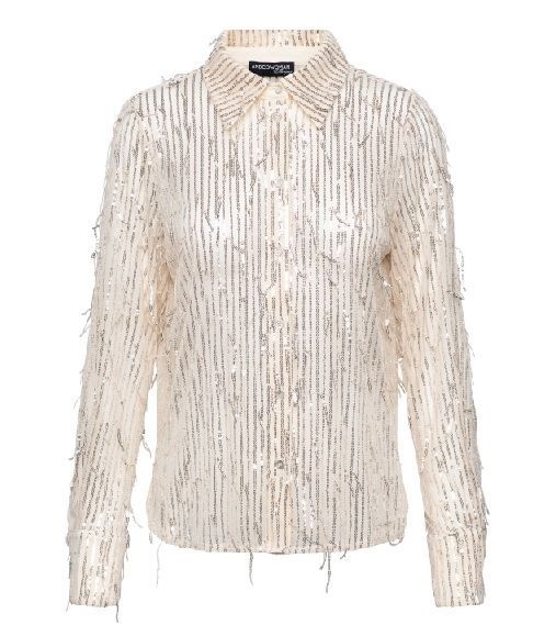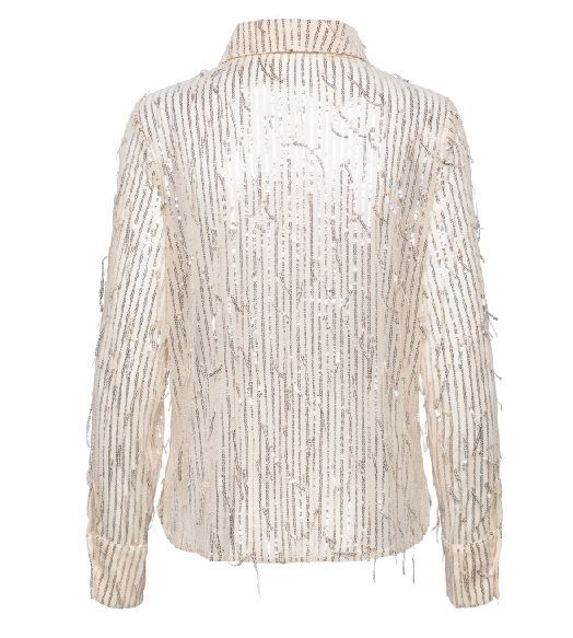 Deze wijde lange blouse van &Co met lange mouwen is gemaakt in een fancy kwaliteit met pailletten.Extra details- Knoopsluiting- Kraag/staander- Lange mouwen- Splitjes in zijnaad- Fancy pailletten kwaliteit.Mooi in combinatie met de verschillende broeken van &Co Woman.Materiaal:100% PolyesterWasvoorschrift:Machinewas max. Fijnwas 30 graden Celsius. Niet in droger