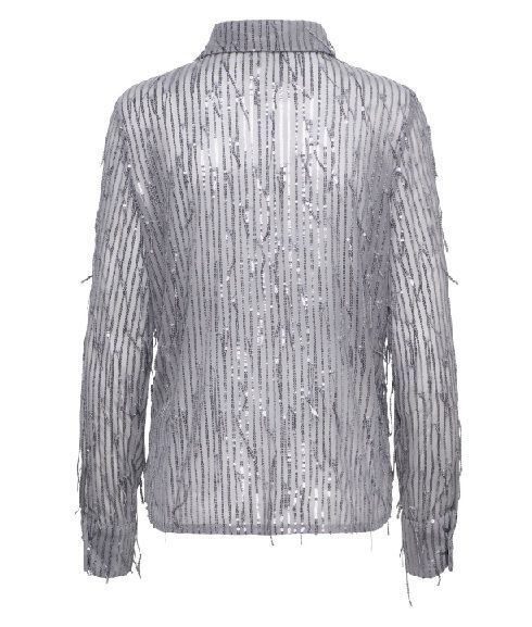 Deze wijde lange blouse van &Co met lange mouwen is gemaakt in een fancy kwaliteit met pailletten.Extra details- Knoopsluiting- Kraag/staander- Lange mouwen- Splitjes in zijnaad- Fancy pailletten kwaliteit.Mooi in combinatie met de verschillende broeken van &Co Woman.Materiaal:100% PolyesterWasvoorschrift:Machinewas max. Fijnwas 30 graden Celsius. Niet in droger