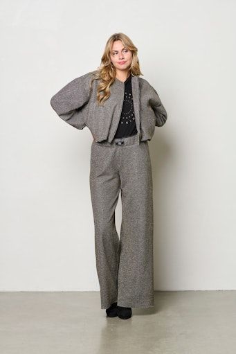 Deze rechte broek met verschillende details is uitgevoerd in een jersey glitter kwaliteit.Extra details zijn:Steekzakken in voorpand.Fancy label op tailleband.Gladde tailleband voor met elastiek in achterpand.Rechte pijp.Leuk te dragen met de Diede jacket van &Co Woman.Materiaal: 50% Polyester - 35% Katoen - 15% Metaal garens Wasvoorschrift: Machinewas max. Fijnwas 30 graden Celsius. Niet in droger<