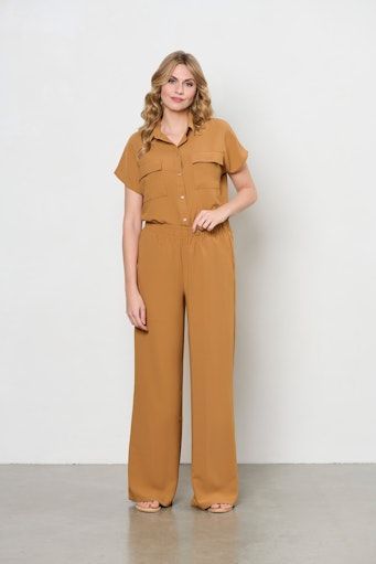 Deze mouwloze blouse is uitgevoerd in een polyester kwaliteit.Extra details zijn:KnoopsluitingKraag/staanderOpgestikte borstzakjes.MouwloosLeuk te dragen met de Nelly pants van &Co Woman.Materiaal:100% PolyesterWasvoorschrift: Machinewas max. Fijnwas 30 graden Celsius. Niet in droger<