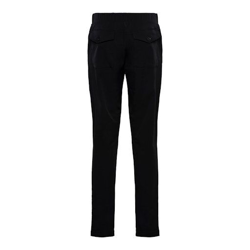 Deze smalle broek met steekzakken in voorpand is uitgevoerd in een travel-kwaliteit.Extra details zijn:Gladde tailleband met elastiek.Steekzakken in voorpand.Opgestikte zakken met klep op achterpand.Cigarette (Taps toe) broekspijp.Fancy gesp detail in tailleband.Leuk te dragen met de Presley blazer van &Co Woman.Materiaal: 87% Polyamide - 13% ElastaanWasvoorschrift: Machinewas max. Fijnwas 30 graden Celsius. Niet in droger<