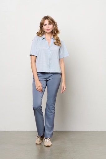 Deze blouse van &Co met korte mouwen is gemaakt in een jersey kwaliteit.Extra detailsV-HalsKnoopsluitingKraag/staanderKorte mouwen.Mooi in combinatie met de verschillende broeken van &Co Woman. Onmisbaar in je kledingkast dus!Verkrijgbaar is verschillende kleuren.Materiaal: 44% Polyester - 27% Metaal garen - 24% Viscose - 5% ElastaanWasvoorschrift: Machinewas max. Fijnwas 30 graden Celsius. Niet in droger