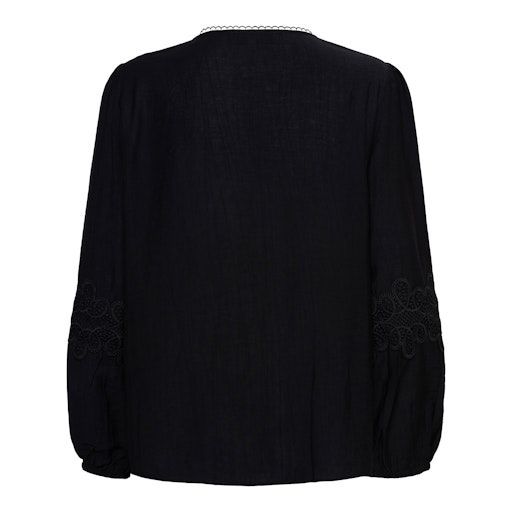 Deze feminine blousetop met ronde hals van &Co woman is uitgevoerd in een soepelvallende viscose kwaliteit.Extra details zijn:Ronde hals met crochettaband afgewerkt.Knoopsluitinging middenvoor.Crochetta kant middenvoor en op mouwen.Lange mouwenElastiek in mouwzoomLeuk te dragen op verschillende items van &Co Woman.Materiaal: 90% Viscose - 10% PolyesterWasvoorschrift: Machinewas max. Fijnwas 30 graden Celsius. Niet in droger
