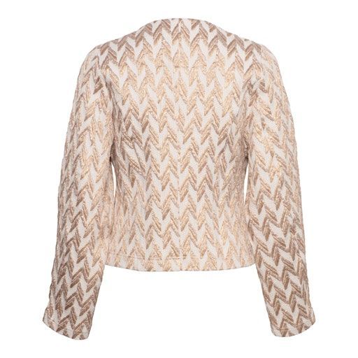 Dit mooie korte jasje is uitgevoerd in een jacquard-kwaliteit.Extra details zijn:V-hals.1-Knoopsluiting.Lange pofmouwLeuk te dragen met de verschillende items van &Co Woman.Materiaal: 44% Polyester - 42% Katoen - 12% Metaal garen - 2% ElastaanWasvoorschrift: Machinewas max. Fijnwas 30 graden Celsius. Niet in droger
