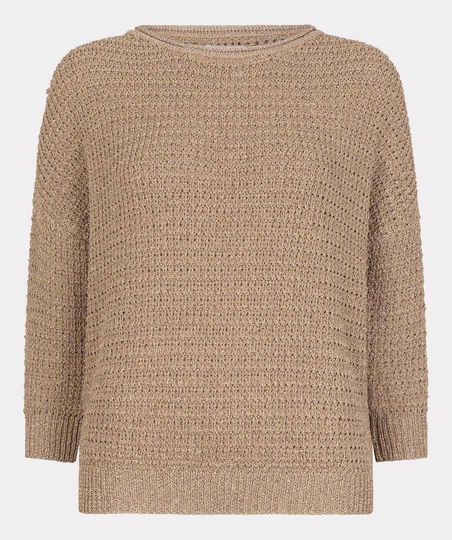 Wijdvallende trui doorweven met glinsterend lurex. De trui is gemaakt van 59% viscose, 21% metallic en 20% polyester. Model is 1.73m en draagt maat S.Materiaal 59% Viscose - 21% Metallic - 20% Polyester