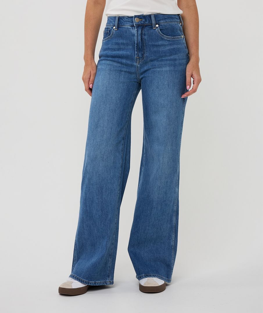 Highwaist jeans met wijde pijpen en steekzakjes aan de voor- en achterzijde. De broek bestaat uit 98% katoen en 2% spandex waardoor hij een lichte stretch heeft! Model is 1.73m en draagt maat S.