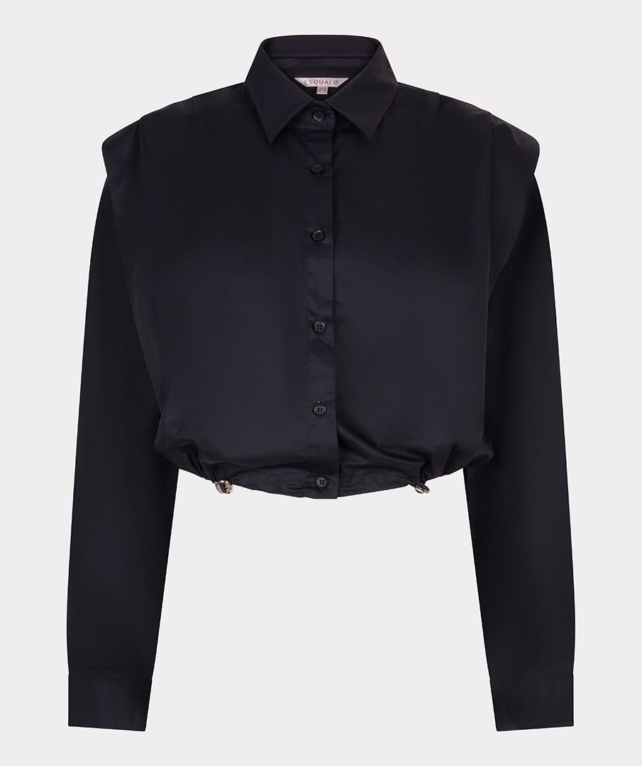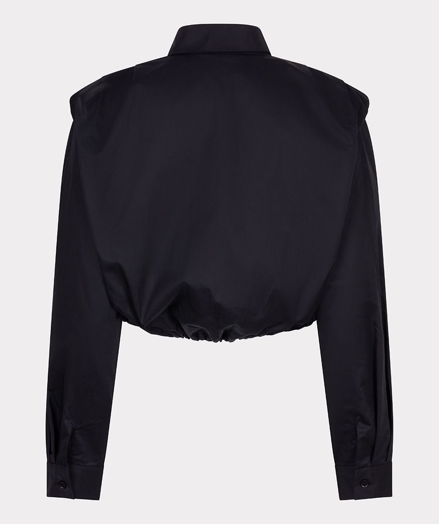 Stoer cropped blouse jasje met schoudervullingen en verstelbare elastische taille. Combineer het jasje met de bijpassende rok voor een complete set! Het jasje is gemaakt van 100% katoen. Model is 1.73m en draagt maat S.
