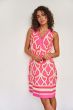 Vrolijke mouwloze zomerjurk in onze Disco Spark print met een met kralen versierde halslijn. De jurk voelt comfortabel aan door de samenstelling van 95% viscose en 5% spandex.