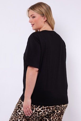 Een statement piece met een stoere twist. Het Maren T-shirt heeft een comfortabele, losvallende fit en een ronde hals die zorgt voor een tijdloze basis. De opvallende tekstapplicatie aan de voorzijde geeft het ontwerp extra karakter en maakt dit item tot een echte eyecatcher. Combineer het casual met een jeans of draag het als speels contrast op een vrouwelijke rok voor een krachtige, zelfverzekerde look.Materiaal 93% katoen, 7% Elastaan