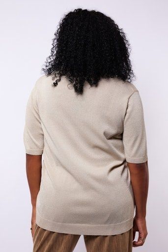 De Romée top is een stijlvolle essential met een vleugje glamour. De zachte gebreide stof met subtiele glans geeft het item een luxe uitstraling, terwijl de V-hals en korte mouwen zorgen voor een flatterend silhouet. Perfect voor een moderne, elegante look. Dit item valt normaal. Kies jouw normale maat.Materiaal 65% Acryl, 35% polyamide
