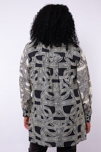 Een echte eyecatcher met een moderne twist. De Sally tuniek valt op door haar grafische print en doordachte details, zoals de contrasterende kraag en manchetten. De soepele stof en rechte pasvorm zorgen voor een elegante, comfortabele look die zowel casual als chic te dragen is. Voor dit artikel adviseren we een koud handwas. Dit item valt normaal. Kies jouw normale maat.Materiaal 86% Viscose, 14% polyester