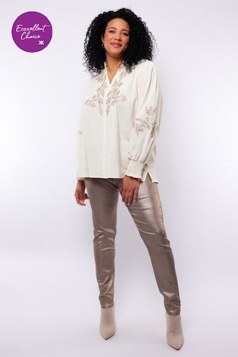 Shine bright in deze metallic zilverkleurige Rory broek! Met een aansluitende pasvorm en high-shine finish is dit dé eyecatcher voor je outfit. Combineer ‘m met een simpele top voor balans of ga all-in met glitter voor een feestelijke look.77% viscose, 20% Polyamide 3% elastan,
