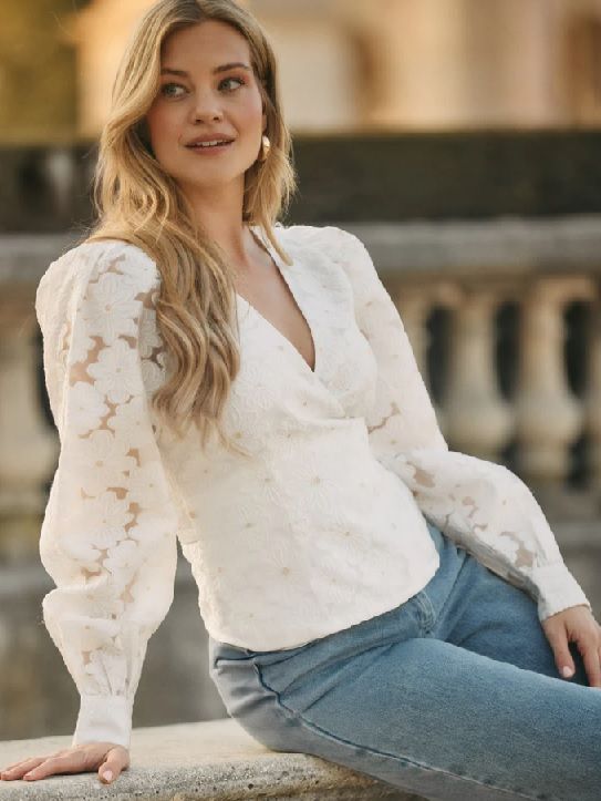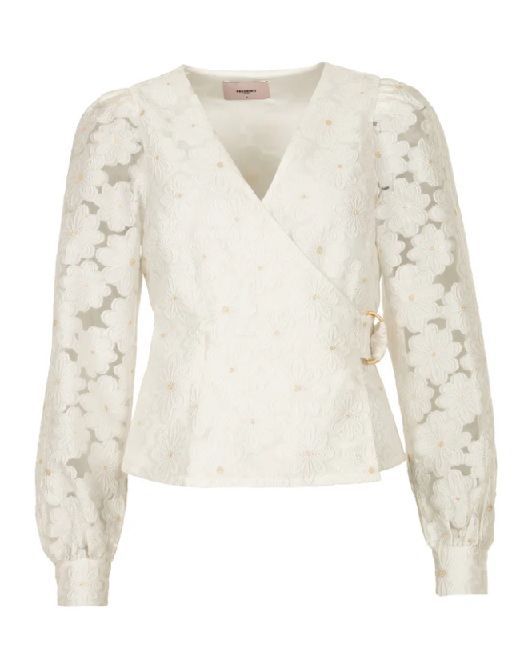 Voeg een vleugje romantiek toe aan je garderobe met deze elegante wikkeltop.Deze top is gemaakt van een doorschijnende stof met verfijnd bloemenborduursel en biedt een vrouwelijke en luchtige look. De D-ring sluiting in de taille accentueert het silhouet en zorgt voor een flatterende pasvorm. Perfect voor speciale gelegenheden of als chic statement in je dagelijkse garderobe.BijzonderhedenWikkeltop met V-halsD-ring sluiting aan de zijkantDoorschijnende stof met bloementextuurSamenstelling stof: 100% polyesterModel is 175 cm en draagt maat S