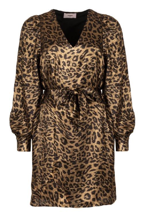 Ga voor een krachtige en vrouwelijke look met deze opvallende jurk.De jurk is uitgevoerd in een glanzende polyester kwaliteit en verrijkt met een foil panterprint die zorgt voor een trendy en luxe uitstraling. De V-hals benadrukt het vrouwelijke karakter, terwijl de lange mouwen en de strikceintuur in de taille het silhouet mooi in balans brengen. Een echte eyecatcher die zowel voor een avond uit als voor een bijzondere gelegenheid perfect tot zijn recht komt.Details:Jurk met V-halsGlanzende polyester kwaliteit met foil panterprintLange mouwenStrikceintuur in de tailleHet model is 175 cm en draagt maat SMateriaalsamenstelling: 100% polyester