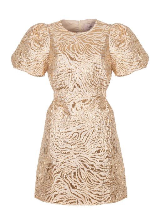 Deze elegante jurk is gemaakt van een geweven jacquard kwaliteit zonder stretch en heeft een rijke structuur met een subtiele glans. De volumineuze pofmouwen en ronde halslijn zorgen voor een stijlvolle en uitgesproken uitstraling. Met de bijpassende ceintuur wordt de taille mooi geaccentueerd, wat de jurk een vrouwelijke en verfijnde look geeft. Ideaal voor feestelijke momenten en bijzondere gelegenheden.Details:• Geweven jacquard kwaliteit zonder stretch• Pofmouwen met elegant volume• Ronde halslijn• Bijpassende ceintuur om de taille te accentueren• Stofsamenstelling: 85% Polyester, 15% Polyamide• Het model is 1,78 m lang en draagt maat S