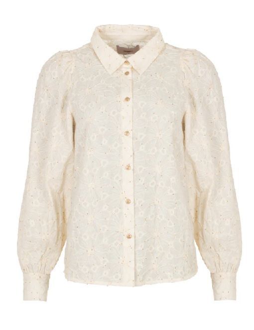 Voeg een vleugje verfijning toe aan je garderobe met deze prachtige blouse in een luchtige woven katoenen kwaliteit. Het ontwerp is rijkelijk voorzien van broderie details en subtiele kleine pailletjes, die een elegante glans creëren bij elke beweging.De vrouwelijke pasvorm en de zachte off-white kleur maken deze blouse ideaal voor zowel casual looks als feestelijke gelegenheden. Een tijdloos item dat moeiteloos charme en stijl combineert.Details:Luchtige woven kwaliteit van katoenBroderie met subtiele pailletjesDoorknoopsluitingVrouwelijke, verfijnde uitstralingStofsamenstelling: 100% KatoenHet model is 178 cm en draagt maat S