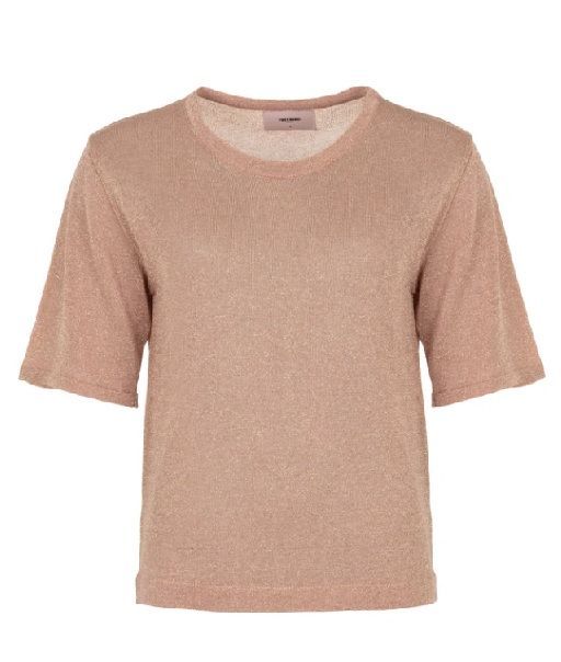 Deze top is uitgevoerd in een fijngebreide viscosemix met een subtiel metallic effect, wat zorgt voor een elegante glans. Het ontwerp heeft een ronde hals en korte mouwen, waardoor het item een tijdloze en veelzijdige uitstraling krijgt. De soepele knit volgt het silhouet op een natuurlijke manier en is perfect voor zowel een casual look als een meer geklede styling.Details:Fijngebreide viscosemix met metallic draadSubtiele glansRonde halsKorte mouwenRechte pasvormStofsamenstelling: 70% Viscose, 20% Metaalvezel, 10% PolyamideHet model is 169 cm en draagt maat S