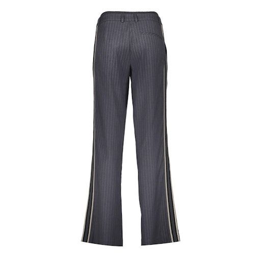 Fit: Mid-waistZakken: Twee steekzakken en twee paspelzakkenSluiting: Dubbele knoop met ritssluiting met elastieke taillebandBroekspijpen: StraightDetails: Zijstrook / tape detail Model is 178 cm lang en draagt maat S/36Artikelnummer: 51508-10Materiaal70% polyester , 28% viscose , 2% elastane