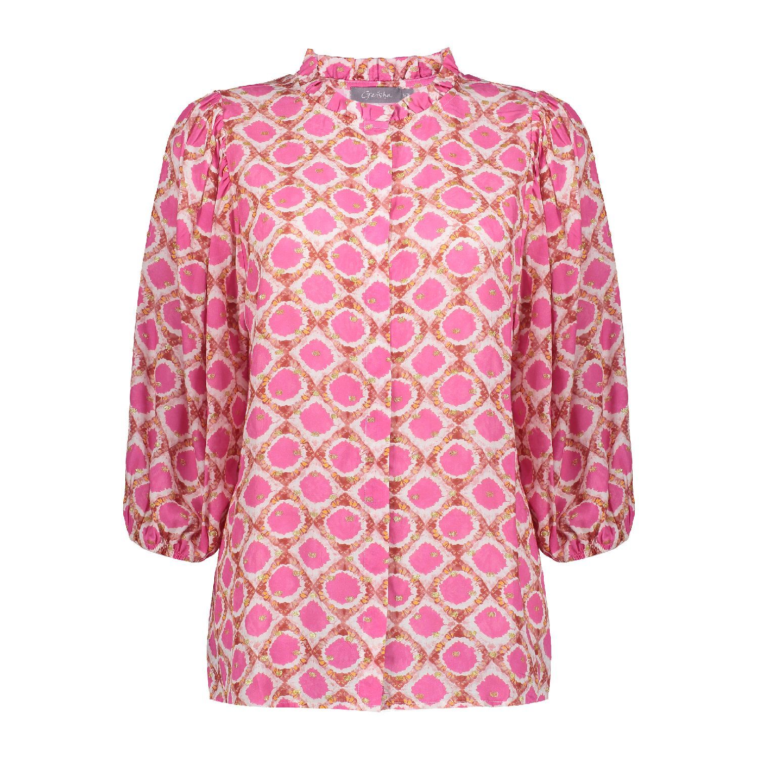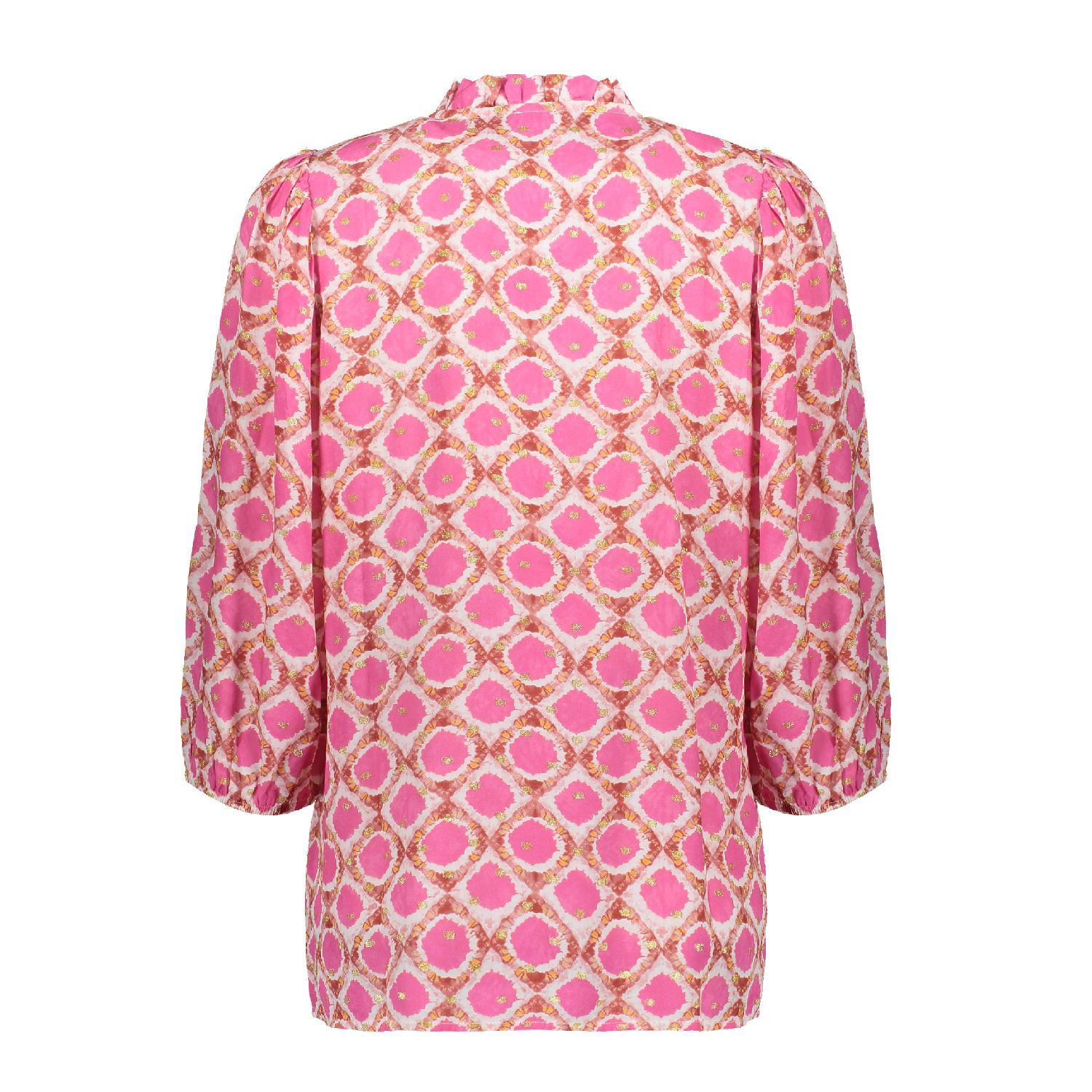 Fit: Rechte vallingKraag: Ronde hals met rufflesMouwen: Driekwart mouwen met elastieke cuffsPrint: Mosaic printDetails: Lurex dots door de print