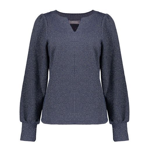 Top met een v-hals en een glitter n de stof.Materiaal 60% polyester, 20% viscose, 18% lurex, 2% elastane