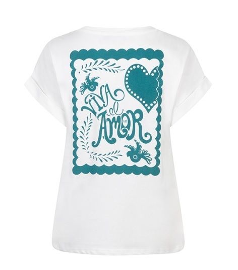 ArtikelinformatieT-shirt Elinea is een wit T-shirt met artwork aan de voor- en achterkant. De ronde hals en omslagmouwen geven het shirt een frisse look. Het T-shirt valt normaal en is ideaal voor een ontspannen, dagelijkse outfit.Materiaal: 86% polyester, 14% katoen