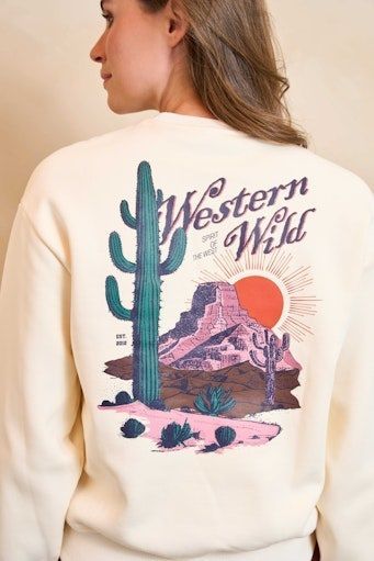 Sweater Nayla is een ecru sweater met ronde hals en lange mouwen. Het artwork op de borst en achterkant geeft een speelse twist. De losvallende fit en zachte stof maken dit een fijne everyday sweater.Materiaal: 86% polyester, 14% katoen Model en fit: losvallend. Het model is 1.74 m en draagt maat S. Lengte sweater: 61 cm bij maat S