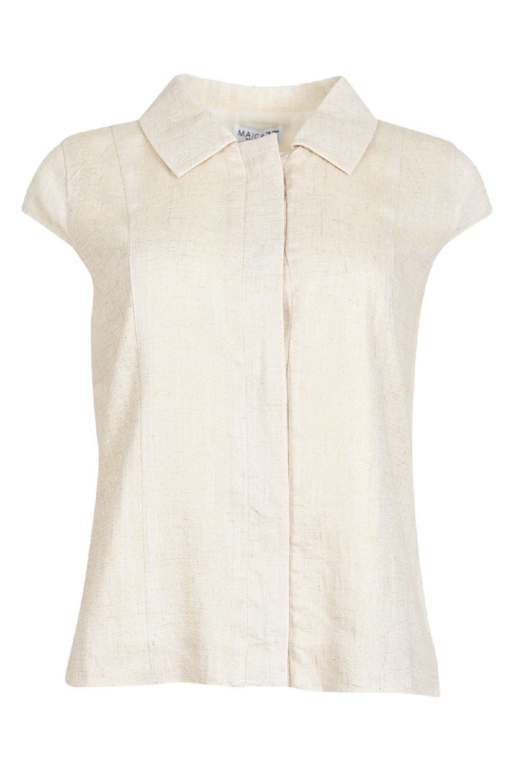 De Nathan blouse is een mouwloze, korte blouse met een klassieke kraag, gemaakt van hoogwaardige viscose met een subtiele glans. De lichte stof voelt comfortabel aan en geeft een verfijnde uitstraling, perfect om zowel casual als chique te dragen. Materialen: 80% Rayon / 20% Linen