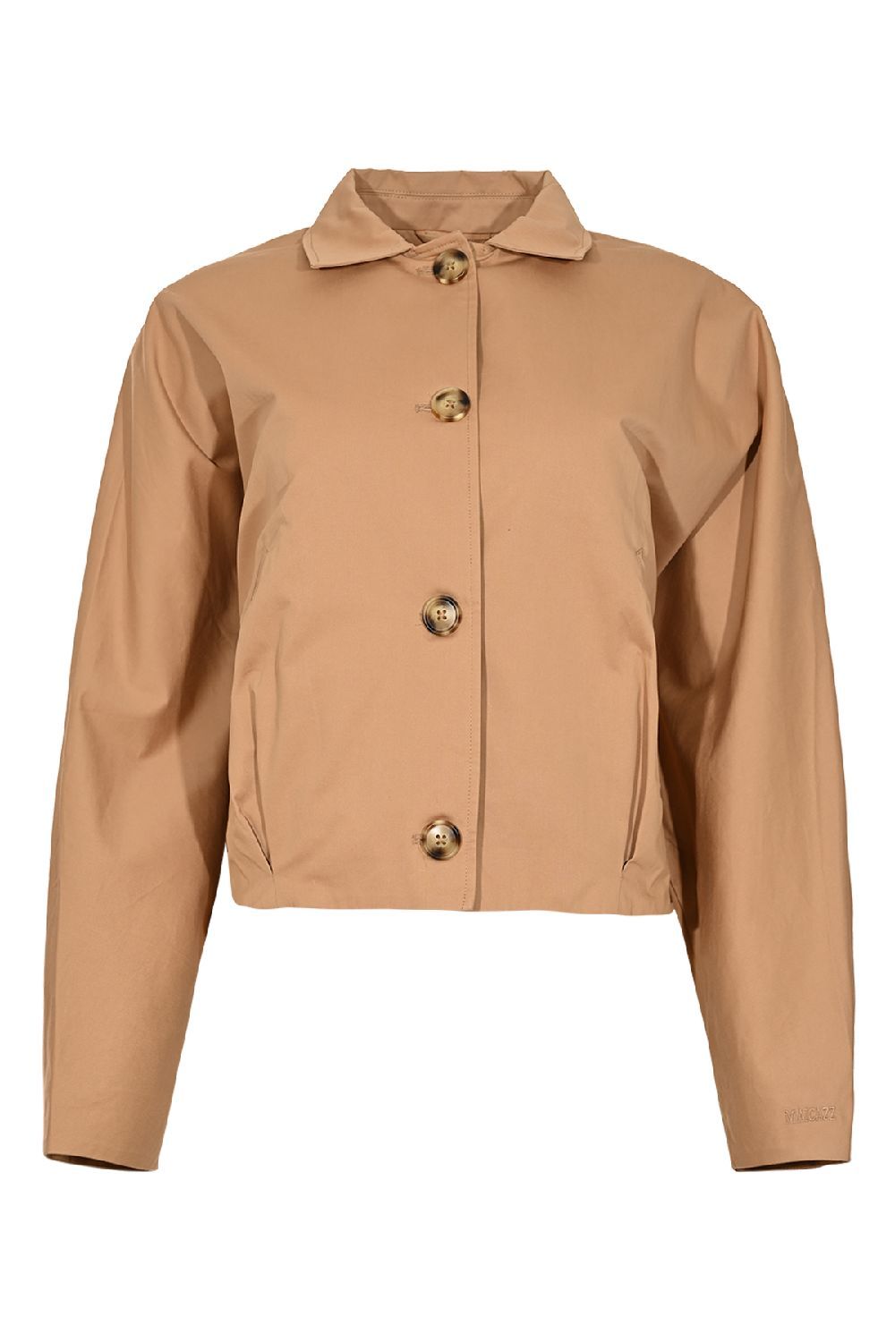 De Scott is een korte jas in de kleur Camel met een rechte pasvorm. Het model heeft een kraag, lange mouwen en grote knopen aan de voorkant. Voorzien van steekzakken in de zijnaden voor een verfijnde, moderne look.kwaliteit:97%COTTON 3%ELASTANE
