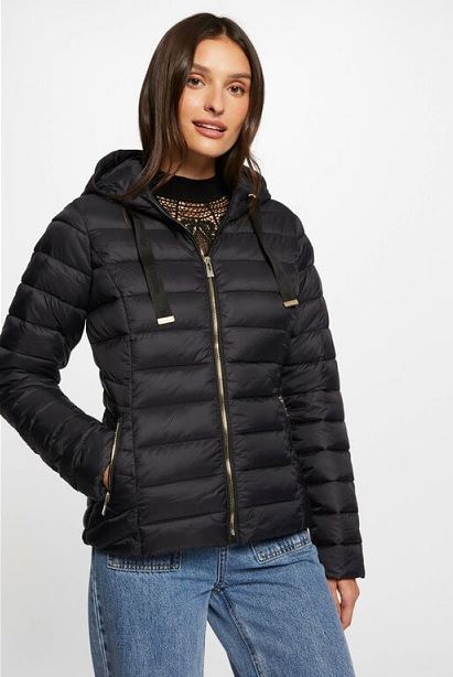 BeschrijvingGewatteerde jas met capuchonGetailleerde snitKortHoge kraagLange mouwenRitssluiting aan de voorkant2 zakkenmet rits aan de voorkant CapuchonCategorie : Donsjassen vrouwKleur : Donsjassen vrouw zwartMaterialen en verzorgingHoofdstof : 100% POLYAMIDEVoering : 100% POLYAMIDEVulling : 100% POLYESTERJacron patch : 100% SYNTHETISCH (POLYURETHAAN)Bevat:Hoofdstof : 100% GERECYCLED POLYAMIDEVulling : 100% GERECYCLED POLYESTER