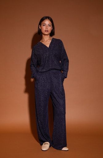 PRODUCT OMSCHRIJVINGOns E-Com model is 168 cm lang en draagt maat S.Maat: Normale pasvorm. Wij raden aan je eigen maat te nemen.Productinformatie: De Alma Blouse is een mooie donkerblauwe top met V-Hals. In de donkerblauwe stof zit een subtiele zilveren glitter / glans. De top heeft lange mouwen en is een prachtige stijl om subtiel mee op te vallen.The power of matching sets: Combineer met de Lova Broek voor een complete look.WASINSTRUCTIES75% Polyester 15% Lurex 10% ElastaanZorg goed voor je STUDIO item door de wasvoorschriften in het kledingstuk nauwkeurig te volgen!