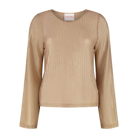 PRODUCT OMSCHRIJVINGHet model is 173 cm en draagt maat S.Maat: Normale pasvorm We raden aan hiervan je eigen maat te nemen.Productinformatie: De Evi top gemaakt van een opgenwerkt goud materiaal. De gouden stof heeft een mooie gouden glans eroverheen. De Top heeft een hogere ronde hals en lange mouwen.The power of matching sets: Combineer samen met de Fiene pants voor de complete look.WASINSTRUCTIESMateriaal: 100% PolyesterZorg goed voor je STUDIO item door de wasvoorschriften in het kledingstuk nauwkeurig te volgen!