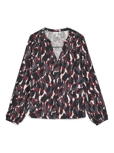 Deze prachtige blouse is gemakkelijk casual of netjes te stylen, afhankelijk van de gelegenheid, maar zal je outfit zeker een elegante touch geven. Combineer het met baggy jeans en hoge hakken voor de perfecte casual-chic look.Producttype : OverhemdHals : Chinese boordMouw : Lange mouwenMouwen : Volumineuze mouwenManchetten : Manchetten met knoopSluiting : KnoopsluitingPrint : Print wordt herhaald over het gehele oppervlak van het productPasvorm : Regular fitMateriaal Hoofdstof: 92% LENZING ECOVERO viscose, 8% Nylon