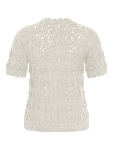 Dit knitwear item is perfect voor elke gelegenheid en elk seizoen. Pointelle is een lichte, luchtige en verfijnde gebreide stof met kleine gaatjes in de vorm van chevrons.Producttype : Gebreide topHals : O-halsMouw : Korte mouwenPasvorm : Regular fitMateriaal Schelp: 90% Katoen - Biologisch, 10% Nylon