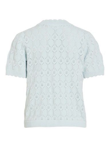 Dit knitwear item is perfect voor elke gelegenheid en elk seizoen. Pointelle is een lichte, luchtige en verfijnde gebreide stof met kleine gaatjes in de vorm van chevrons.Producttype : Gebreide topHals : O-halsMouw : Korte mouwenPasvorm : Regular fitMateriaal Schelp: 90% Katoen - Biologisch, 10% Nylon
