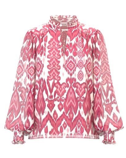 De natuur staat in bloei. Verfraai je lentegarderobe met frisse nieuwe items. Gerecycled polyester is een synthetisch materiaal, gemaakt van pre- of post-consumer afval.Producttype : TopHals : Geknoopte kraagMouw : Lange mouwenManchetten : Manchetten met elastiekSluiting : Strikkoord sluitingVoering : Polyester voering voor extra comfortPrint : Print wordt herhaald over het gehele oppervlak van het productPasvorm : Regular fitMateriaal Schelp: 100% Polyester - Gerecycled